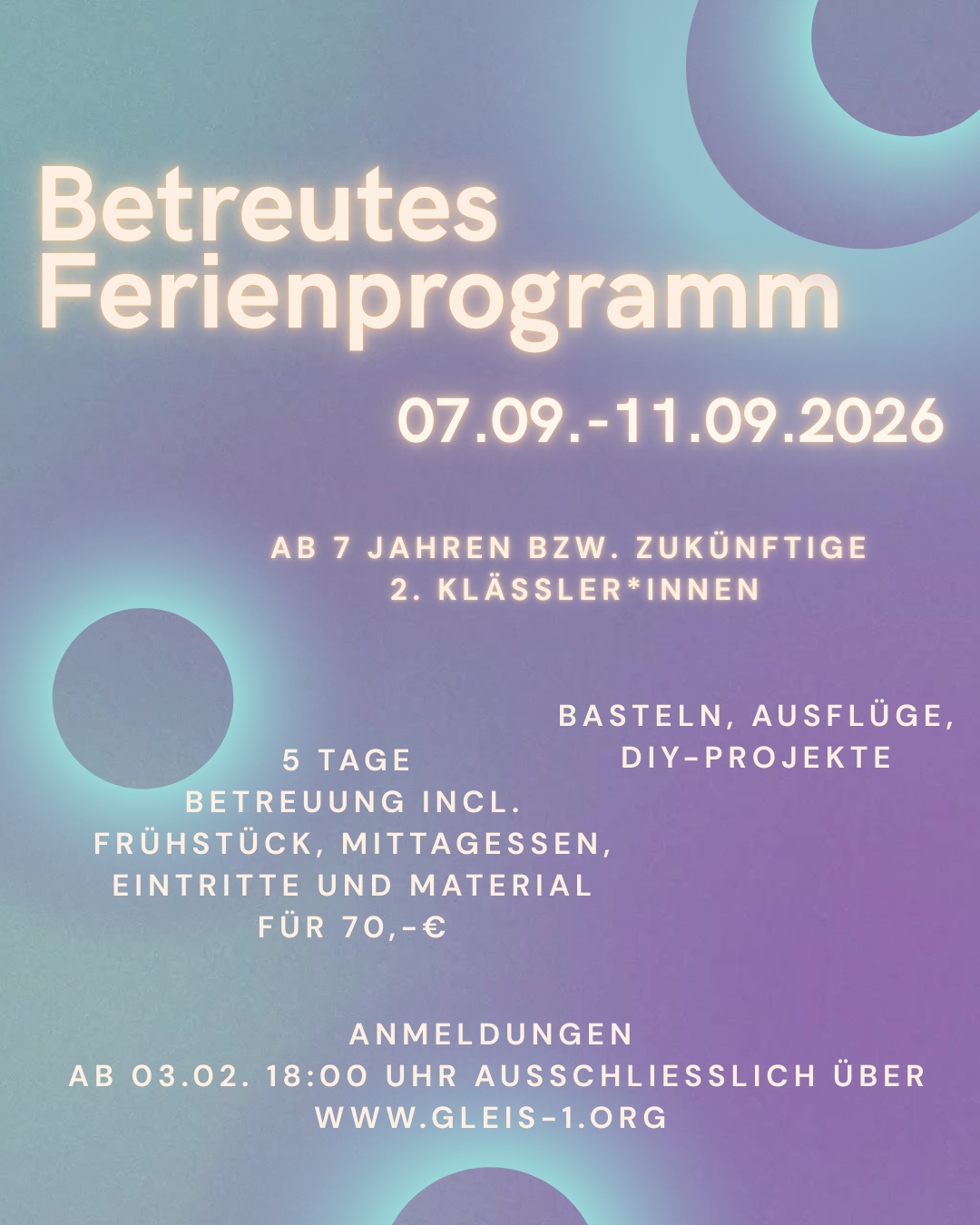 Anmeldung unter info@gleis-1.de oder über WhatsApp 0170 1200766.