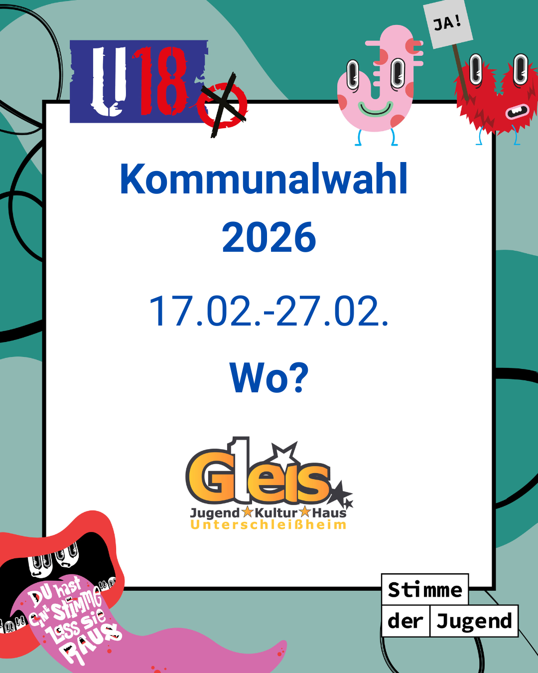 Aufgepasst -> die Kommunalwahlen 2026 stehen vor der Tür. Du bist unter 18 Jahre alt, wohnst in Unterschleißheim und wolltest schon immer mal deine politische Forderung, deinen Wunsch oder deine Frage an die lokalen Politiker stellen, dann hast du jetzt bei uns die Möglichkeit dazu.